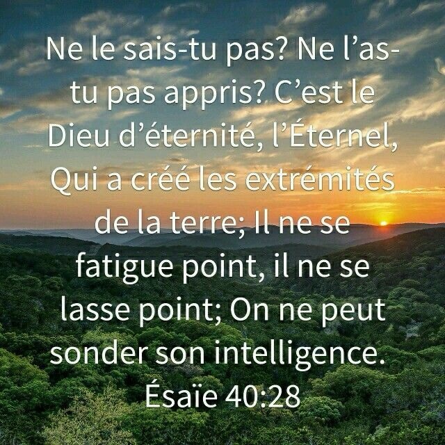 Tu ne le sais donc pas, tu ne l’as pas entendu ? Le Seigneur est le Dieu éternel, il crée jusqu’aux extrémités de la terre, il ne se fatigue pas, ne se lasse pas. Son intelligence est insondable.
