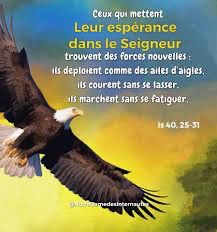 mais ceux qui mettent leur espérance dans le Seigneur trouvent des forces nouvelles ; ils déploient comme des ailes d’aigles, ils courent sans se lasser, ils marchent sans se fatiguer.
