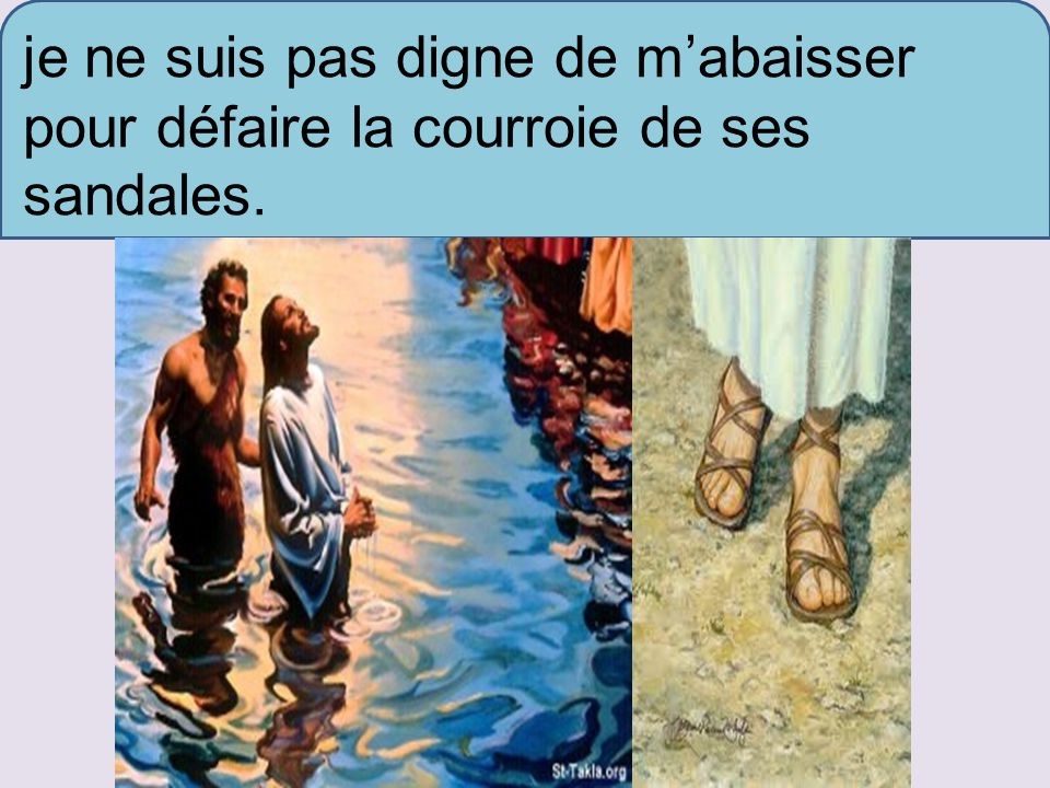 c’est lui qui vient derrière moi, et je ne suis pas digne de délier la courroie de sa sandale. »