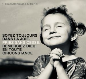 rendez grâce en toute circonstance : c’est la volonté de Dieu à votre égard dans le Christ Jésus.