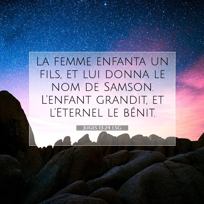 La femme enfanta un fils, et elle lui donna le nom de Samson. L’enfant grandit, le Seigneur le bénit,
