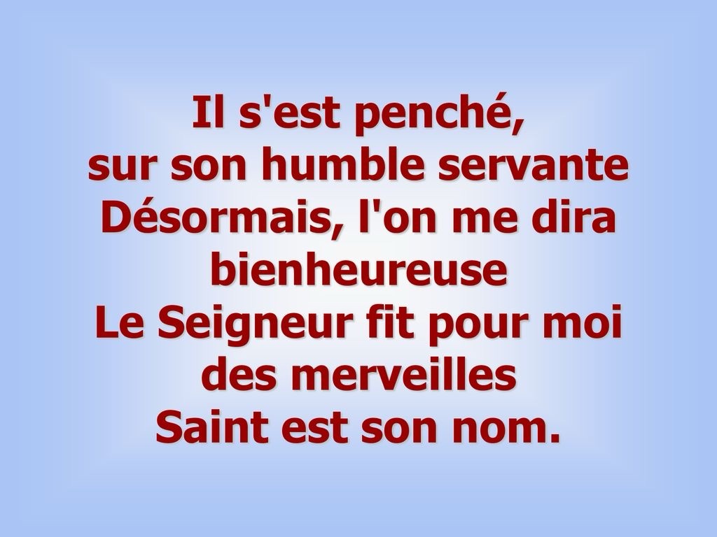 En ce temps-là, Marie rendit grâce au Seigneur en disant :