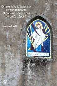 Le premier jour de la semaine, Marie Madeleine courut trouver Simon-Pierre et l’autre disciple, celui que Jésus aimait, et elle leur dit : « On a enlevé le Seigneur de son tombeau, et nous ne savons pas où on l’a déposé. »