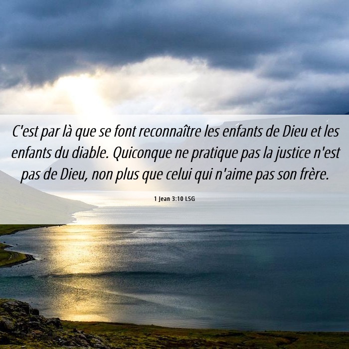 Voici comment se manifestent les enfants de Dieu et les enfants du diable : quiconque ne pratique pas la justice n’est pas de Dieu, et pas davantage celui qui n’aime pas son frère.