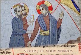 Il leur dit : « Venez, et vous verrez. » Ils allèrent donc, ils virent où il demeurait, et ils restèrent auprès de lui ce jour-là. C’était vers la dixième heure (environ quatre heures de l’après-midi).