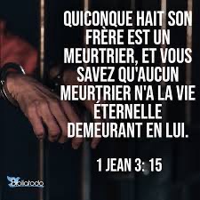 Quiconque a de la haine contre son frère est un meurtrier, et vous savez que pas un meurtrier n’a la vie éternelle demeurant en lui.