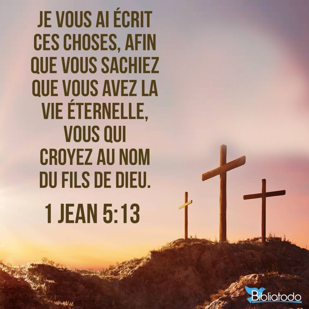 Je vous ai écrit cela pour que vous sachiez que vous avez la vie éternelle, vous qui mettez votre foi dans le nom du Fils de Dieu.