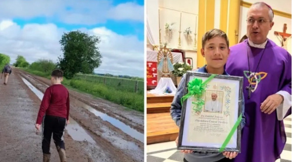 Le jeune argentin a parcouru à pied 11 km pour recevoir le sacrement de confirmation
