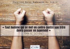 Eh bien ! moi, je vous dis : Tout homme qui se met en colère contre son frère devra passer en jugement. Si quelqu’un insulte son frère, il devra passer devant le tribunal. Si quelqu’un le traite de fou, il sera passible de la géhenne de feu.