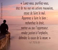 Apprenez à faire le bien : recherchez le droit, mettez au pas l’oppresseur, rendez justice à l’orphelin, défendez la cause de la veuve.