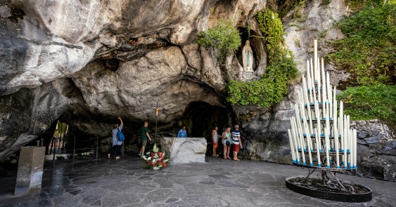 À Lourdes, lors de la neuvième apparition de Marie à Bernadette, le 25 février 1858, la Vierge lance un appel à la pénitence. Trois cents personnes sont présentes.