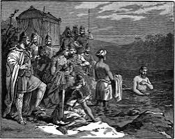 Il descendit jusqu’au Jourdain et s’y plongea sept fois, pour obéir à la parole de l’homme de Dieu ; alors sa chair redevint semblable à celle d’un petit enfant : il était purifié !