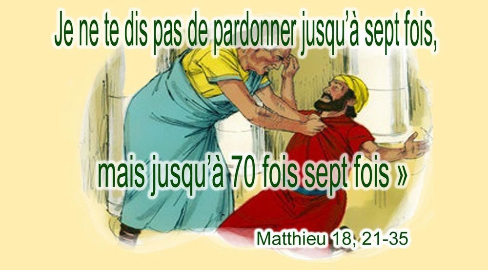 Jésus lui répondit : « Je ne te dis pas jusqu’à sept fois, mais jusqu’à soixante-dix fois sept fois.