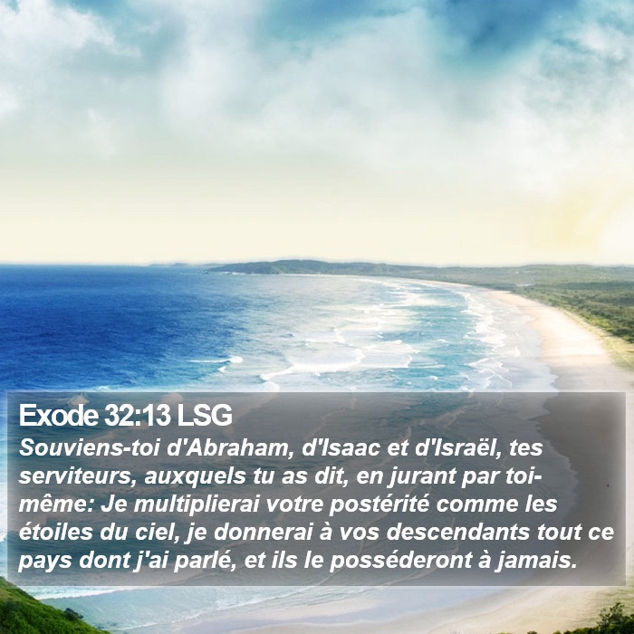 Souviens-toi de tes serviteurs, Abraham, Isaac et Israël, à qui tu as juré par toi-même : “Je multiplierai votre descendance comme les étoiles du ciel ; je donnerai, comme je l’ai dit, tout ce pays à vos descendants, et il sera pour toujours leur héritage.” »