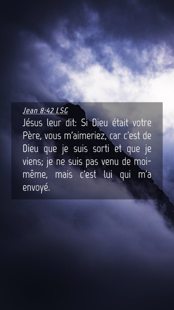 Jésus leur dit : « Si Dieu était votre Père, vous m’aimeriez, car moi, c’est de Dieu que je suis sorti et que je viens. Je ne suis pas venu de moi-même ; c’est lui qui m’a envoyé. »