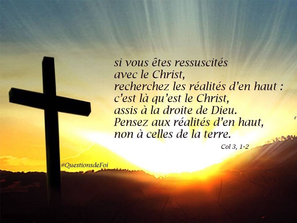 Frères, si vous êtes ressuscités avec le Christ, recherchez les réalités d’en haut : c’est là qu’est le Christ, assis à la droite de Dieu.
