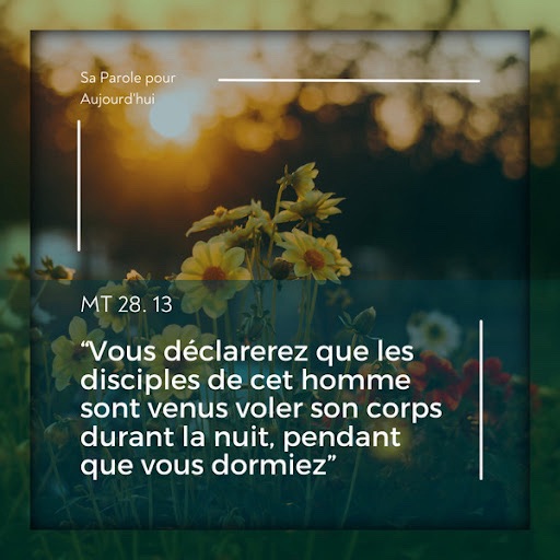 en disant : « Voici ce que vous direz : “Ses disciples sont venus voler le corps, la nuit pendant que nous dormions.”