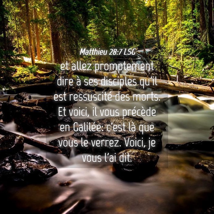 Alors Jésus leur dit : « Soyez sans crainte, allez annoncer à mes frères qu’ils doivent se rendre en Galilée : c’est là qu’ils me verront. »