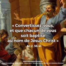 Pierre leur répondit : « Convertissez-vous, et que chacun de vous soit baptisé au nom de Jésus Christ pour le pardon de ses péchés ; vous recevrez alors le don du Saint-Esprit.