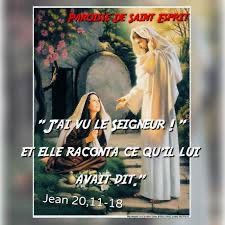 Marie Madeleine s’en va donc annoncer aux disciples : « J’ai vu le Seigneur ! », et elle raconta ce qu’il lui avait dit.