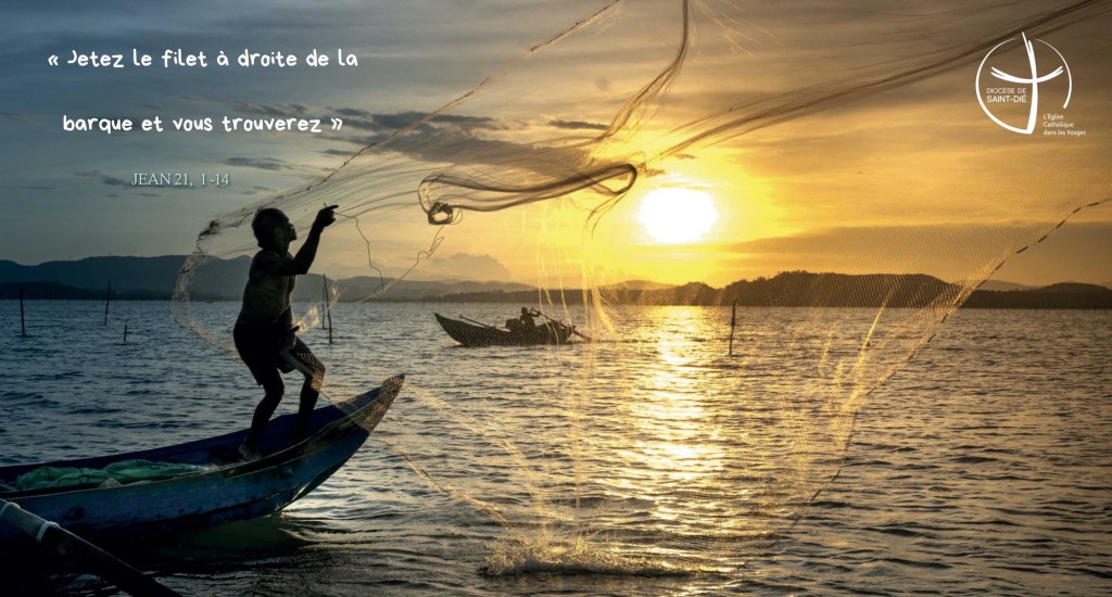 Il leur dit : « Jetez le filet à droite de la barque, et vous trouverez. » Ils jetèrent donc le filet, et cette fois ils n’arrivaient pas à le tirer, tellement il y avait de poissons.