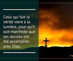 mais celui qui fait la vérité vient à la lumière, pour qu’il soit manifeste que ses œuvres ont été accomplies en union avec Dieu. »
