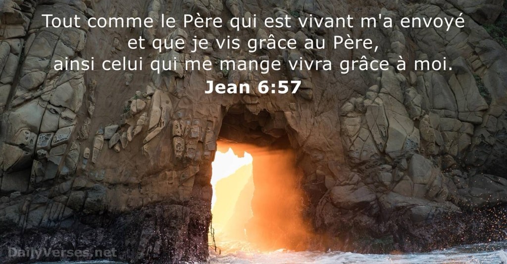De même que le Père, qui est vivant, m’a envoyé, et que moi je vis par le Père, de même celui qui me mange, lui aussi vivra par moi.