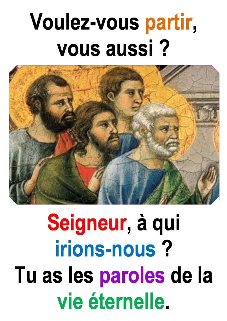 Simon-Pierre lui répondit : « Seigneur, à qui irions-nous ? Tu as les paroles de la vie éternelle.