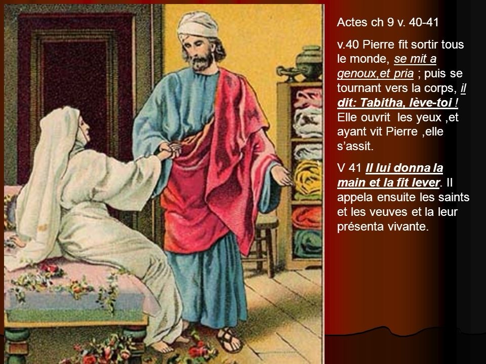 Pierre, lui donnant la main, la fit lever. Puis il appela les fidèles et les veuves et la leur présenta vivante.