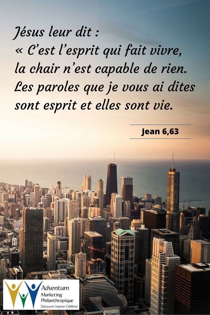 C’est l’esprit qui fait vivre, la chair n’est capable de rien. Les paroles que je vous ai dites sont esprit et elles sont vie.