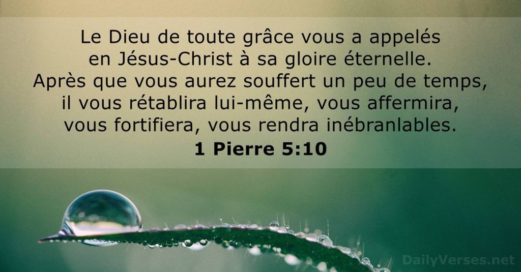 Après que vous aurez souffert un peu de temps, le Dieu de toute grâce, lui qui, dans le Christ Jésus, vous a appelés à sa gloire éternelle, vous rétablira lui-même, vous affermira, vous fortifiera, vous rendra inébranlables.
