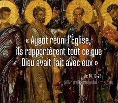 Une fois arrivés, ayant réuni l’Église, ils rapportèrent tout ce que Dieu avait fait avec eux, et comment il avait ouvert aux nations la porte de la foi.