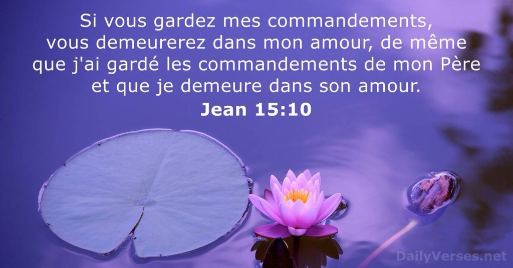 Si vous gardez mes commandements, vous demeurerez dans mon amour, comme moi, j’ai gardé les commandements de mon Père, et je demeure dans son amour.