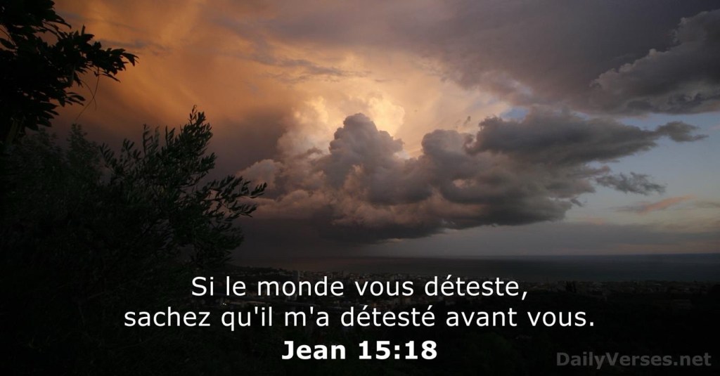 Si vous apparteniez au monde, le monde aimerait ce qui est à lui. Mais vous n’appartenez pas au monde, puisque je vous ai choisis en vous prenant dans le monde ; voilà pourquoi le monde a de la haine contre vous.