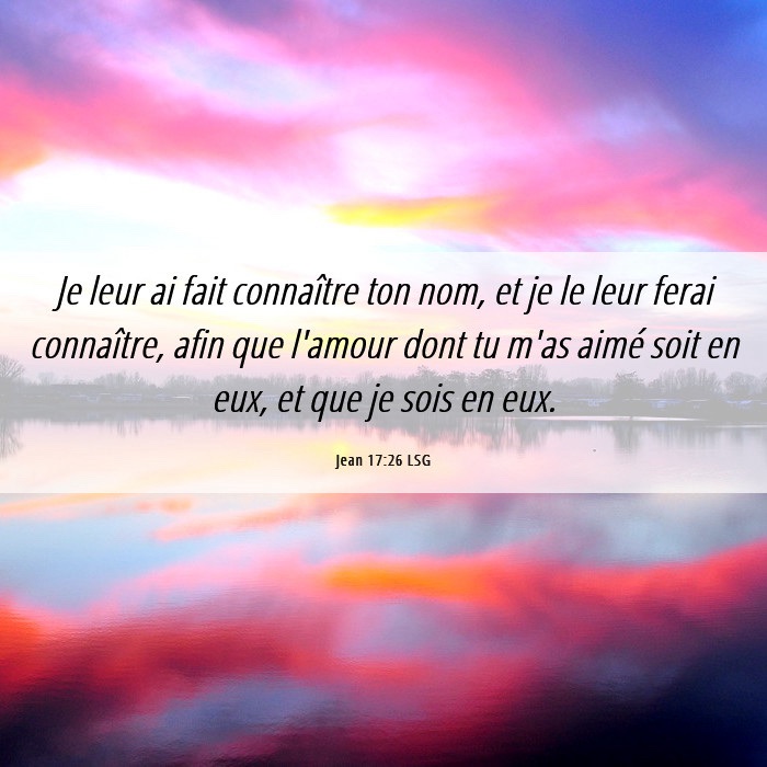 Je leur ai fait connaître ton nom, et je le ferai connaître, pour que l’amour dont tu m’as aimé soit en eux, et que moi aussi, je sois en eux. »