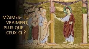 Jésus se manifesta encore aux disciples sur le bord de la mer de Tibériade. Quand ils eurent mangé, Jésus dit à Simon-Pierre : « Simon, fils de Jean, m’aimes-tu vraiment, plus que ceux-ci ? » Il lui répond : « Oui, Seigneur ! Toi, tu le sais : je t’aime. » Jésus lui dit : « Sois le berger de mes agneaux. »