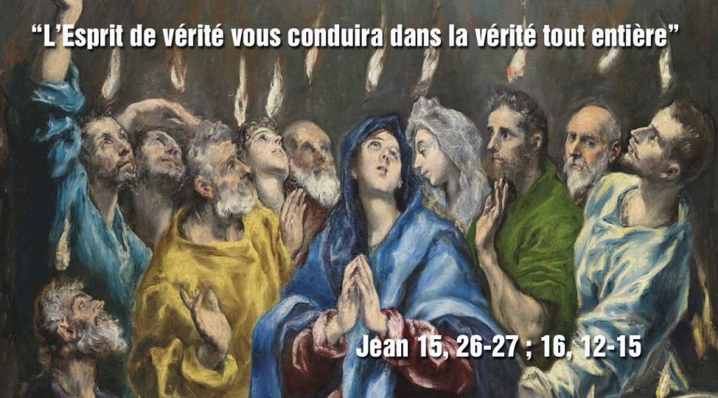 Quand il viendra, lui, l’Esprit de vérité, il vous conduira dans la vérité tout entière. En effet, ce qu’il dira ne viendra pas de lui-même : mais ce qu’il aura entendu, il le dira ; et ce qui va venir, il vous le fera connaître.
