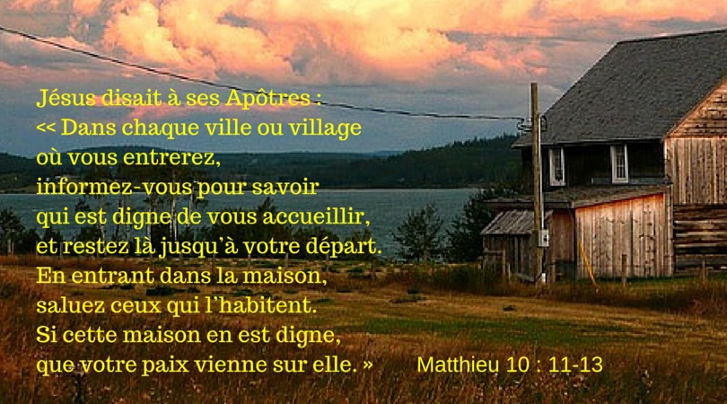 Dans chaque ville ou village où vous entrerez, informez-vous pour savoir qui est digne de vous accueillir, et restez là jusqu’à votre départ.