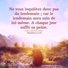 Ne vous faites pas de souci pour demain : demain aura souci de lui-même ; à chaque jour suffit sa peine. »