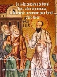En ces jours-là, dans la synagogue d’Antioche de Pisidie, Paul disait aux Juifs : « Dieu a, pour nos pères, suscité David comme roi, et il lui a rendu ce témoignage : ‘J’ai trouvé David, fils de Jessé ; c’est un homme selon mon cœur qui réalisera toutes mes volontés.’