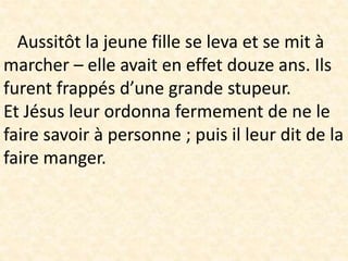 Aussitôt la jeune fille se leva et se mit à marcher – elle avait en effet douze ans. Ils furent frappés d’une grande stupeur.