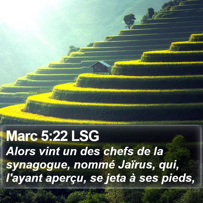 Arrive un des chefs de synagogue, nommé Jaïre. Voyant Jésus, il tombe à ses pieds