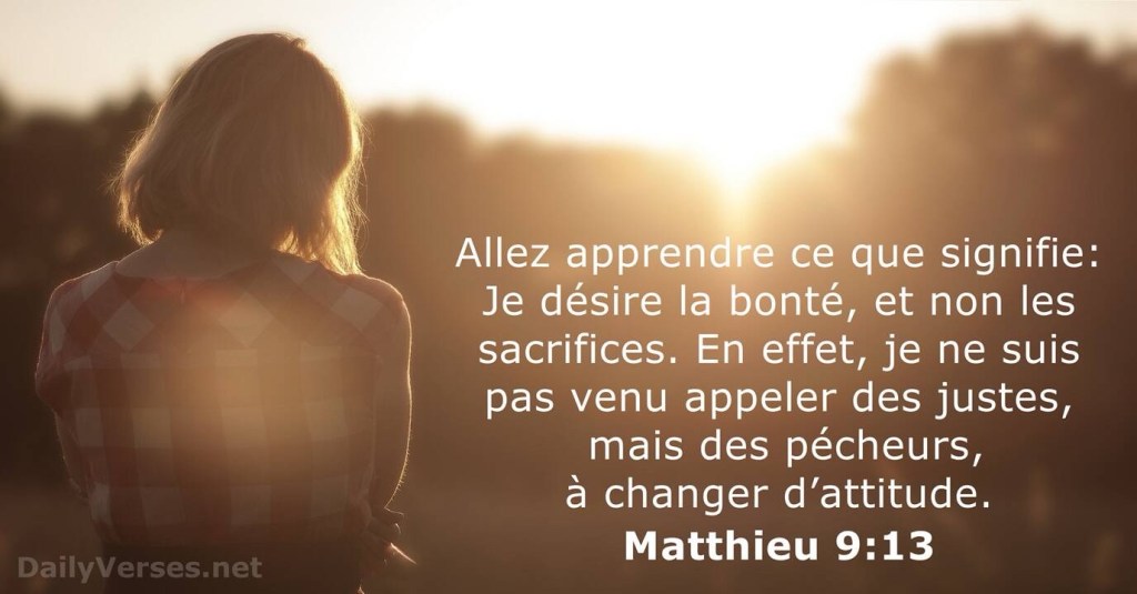 Allez apprendre ce que signifie : ‘Je veux la miséricorde, non le sacrifice’. En effet, je ne suis pas venu appeler des justes, mais des pécheurs. »