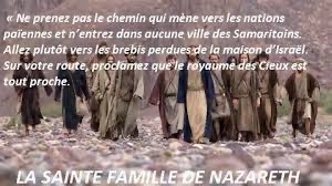 Ces douze, Jésus les envoya en mission avec les instructions suivantes : « Ne prenez pas le chemin qui mène vers les nations païennes et n’entrez dans aucune ville des Samaritains.