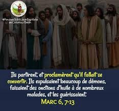 Ils expulsaient beaucoup de démons, faisaient des onctions d’huile à de nombreux malades, et les guérissaient.