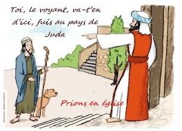 En ces jours-là, Amazias, prêtre de Béthel, dit au prophète Amos : « Toi, le voyant, va-t’en d’ici, fuis au pays de Juda ; c’est là-bas que tu pourras gagner ta vie en faisant ton métier de prophète.