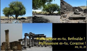 « Malheureuse es-tu, Corazine ! Malheureuse es-tu, Bethsaïde ! Car, si les miracles qui ont eu lieu chez vous avaient eu lieu à Tyr et à Sidon, ces villes, autrefois, se seraient converties sous le sac et la cendre.