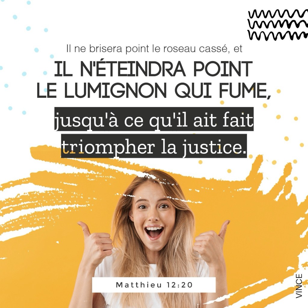 Il n’écrasera pas le roseau froissé, il n’éteindra pas la mèche qui faiblit, jusqu’à ce qu’il ait fait triompher le jugement.