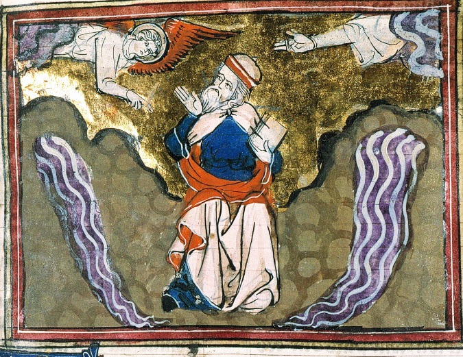 J’ai vu : un vent de tempête venant du nord, un gros nuage, un feu jaillissant et, autour, une clarté ; au milieu, comme un scintillement de vermeil du milieu du feu.