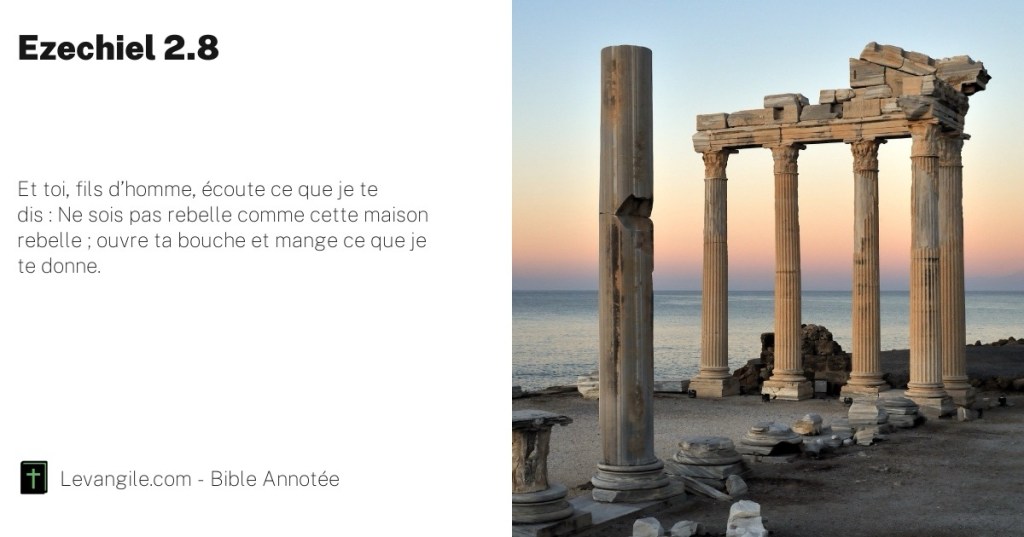 Et toi, fils d’homme, écoute ce que je te dis. Ne sois pas rebelle comme cette engeance de rebelles. Ouvre la bouche, et mange ce que je te donne. »